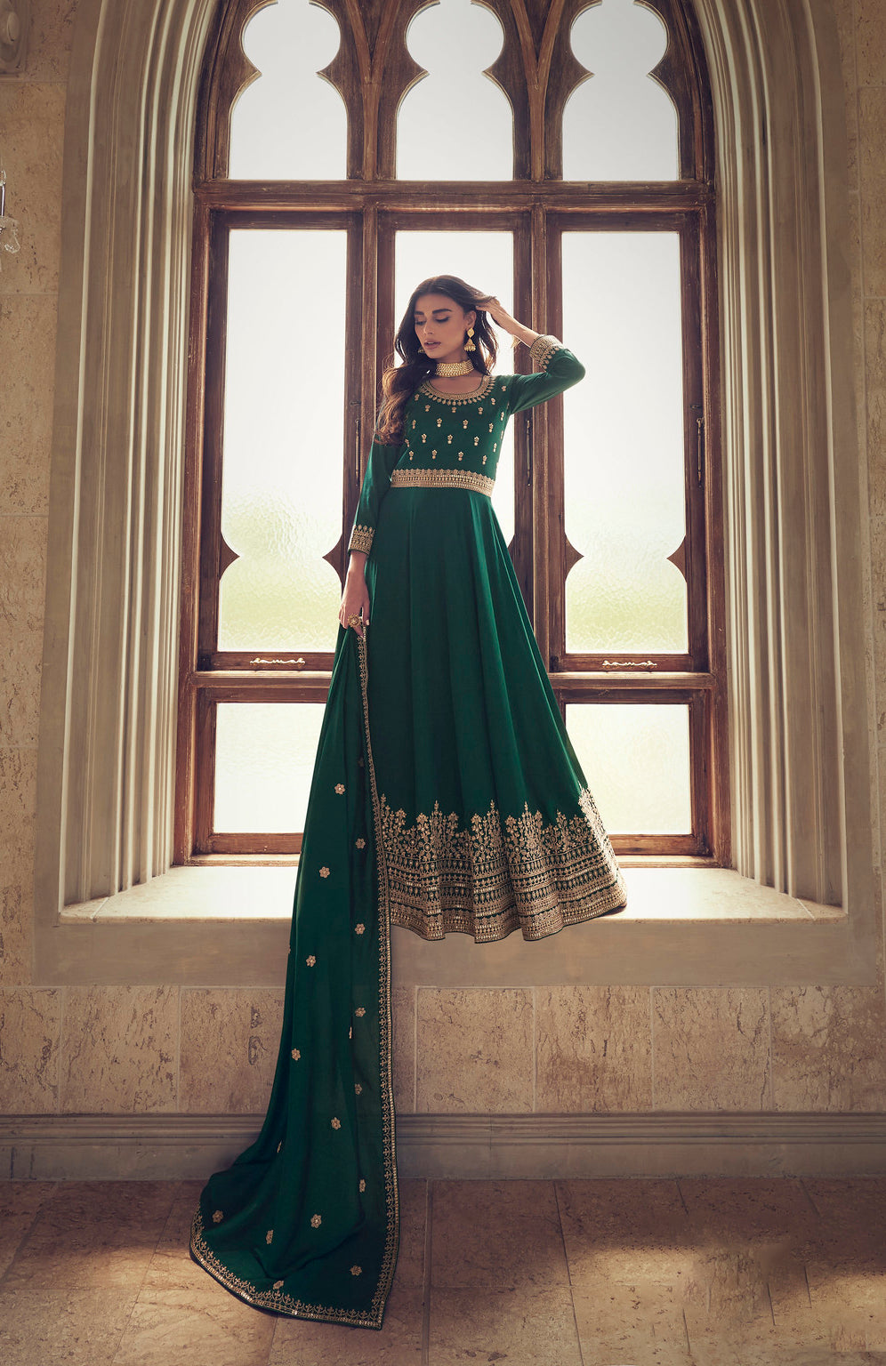 Meta Description (300 characters): Elevate your ethnic wardrobe with our bottle green premium silk Anarkali suit. Shop online at Ethnic Gallery for the finest Indian Anarkali suit, combining tradition and design flawlessly. Perfect for parties and cultural gatherings, this designer Anarkali suit embodies grace and elegance.