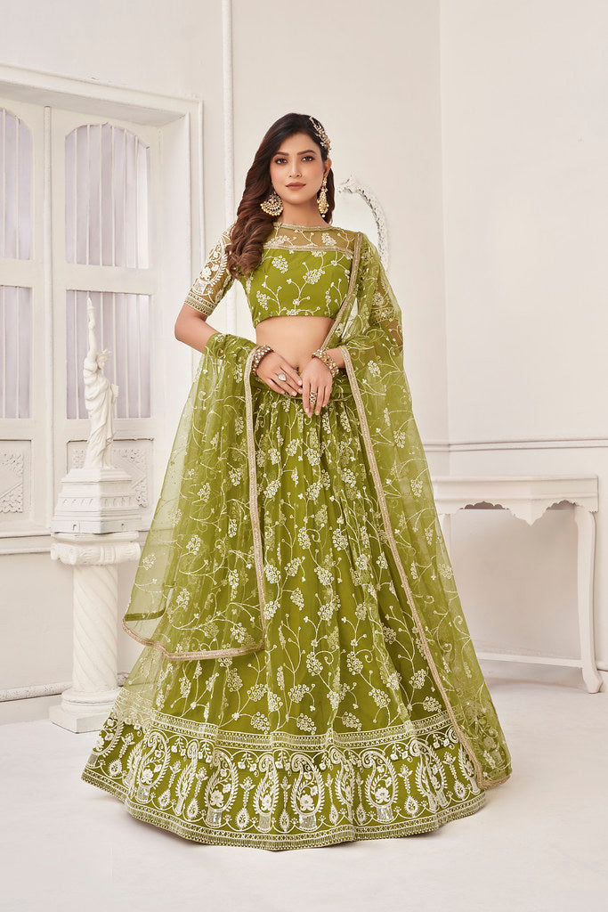 Elevate your ethnic fashion game with this Olive Green Designer Lehenga Choli, a captivating creation from Ethnic Gallery. Crafted to perfection, this Indian Lehenga Choli combines timeless elegance with contemporary flair. Whether you're attending a wedding, a festive celebration, or a grand soirée, this semi-stitched ensemble is sure to make you the center of attention.