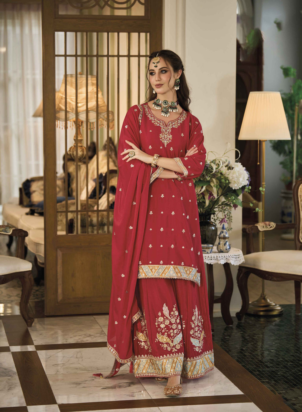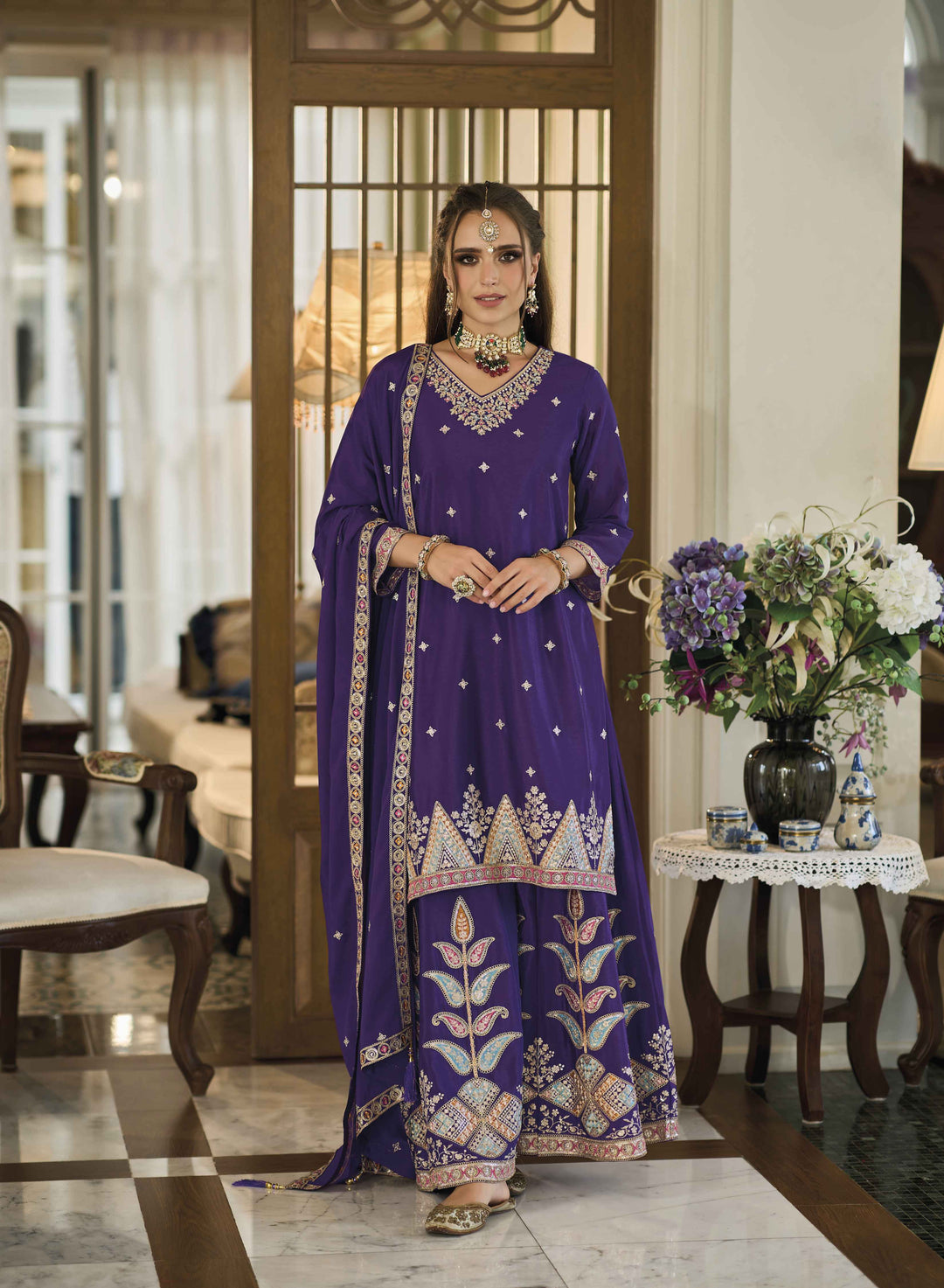Elevate your style game with Ethnic Gallery's Palazzo Suits collection. Palazzo suits are more than just stylish attire; they're a fashion statement that effortlessly balances comfort and flair, suitable for a wide range of occasions, from business meetings to weddings. This trend has evolved and expanded its horizons beyond women's fashion, encompassing various patterns like the Anarkali palazzo suit, Pakistani palazzo suit, and many more. Explore our Palazzo Suits collection at Ethnic Gallery and indulge in the comfort and style of this iconic ensemble. Whether you're seeking a party wear palazzo suit or an Indian palazzo suit, our range has something to suit every occasion and fashion preference. Elevate your style with the timeless appeal of Palazzo Suits and make a lasting impression wherever you go. Shop online for your favorite Palazzo Suit design and experience the perfect blend of comfort and fashion for every occasion.