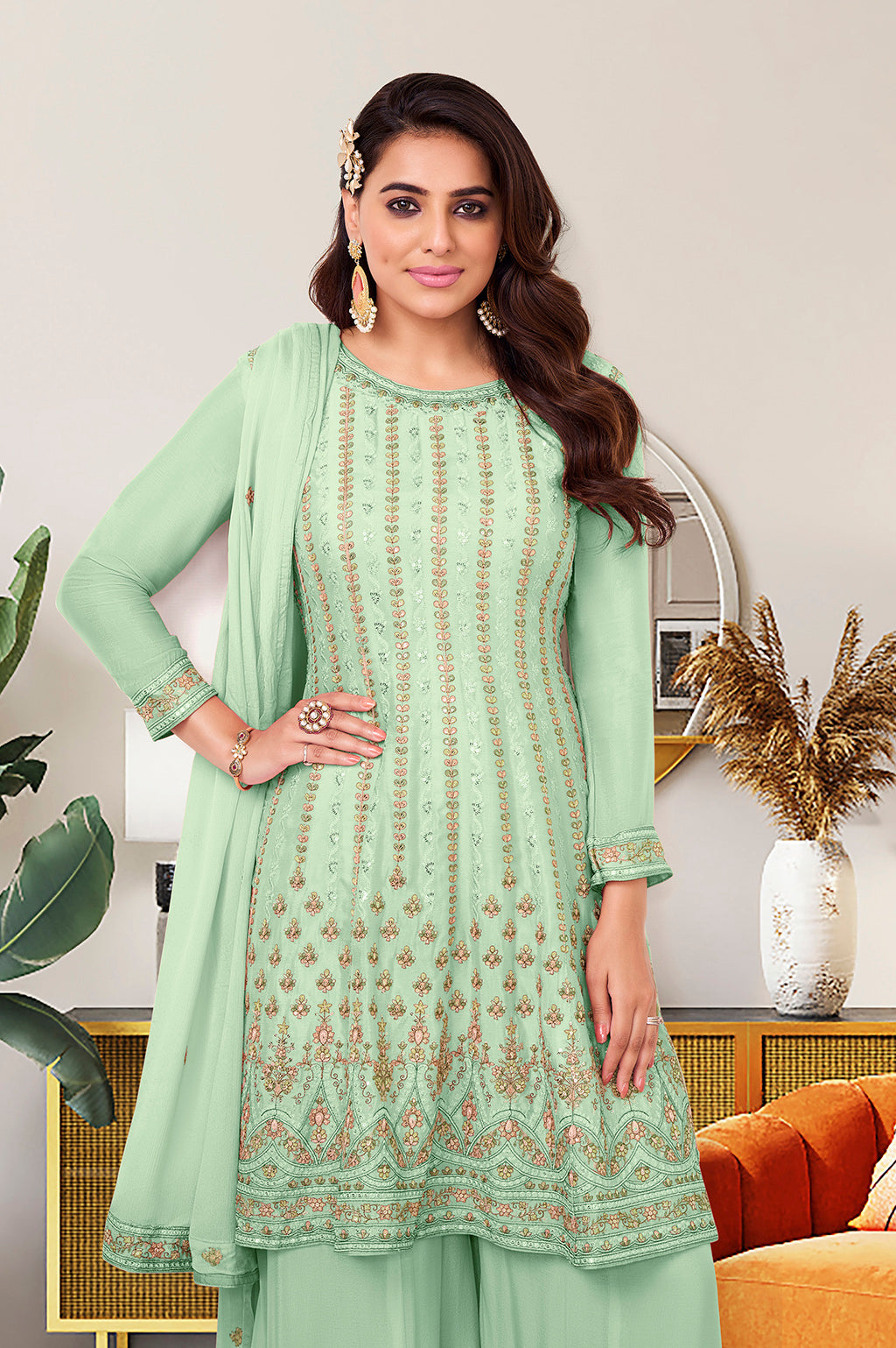 Elevate your style game with Ethnic Gallery's Palazzo Suits collection. Palazzo suits are more than just stylish attire; they're a fashion statement that effortlessly balances comfort and flair, suitable for a wide range of occasions, from business meetings to weddings. This trend has evolved and expanded its horizons beyond women's fashion, encompassing various patterns like the Anarkali palazzo suit, Pakistani palazzo suit, and many more. Explore our Palazzo Suits collection at Ethnic Gallery and indulge in the comfort and style of this iconic ensemble. Whether you're seeking a party wear palazzo suit or an Indian palazzo suit, our range has something to suit every occasion and fashion preference. Elevate your style with the timeless appeal of Palazzo Suits and make a lasting impression wherever you go. Shop online for your favorite Palazzo Suit design and experience the perfect blend of comfort and fashion for every occasion.