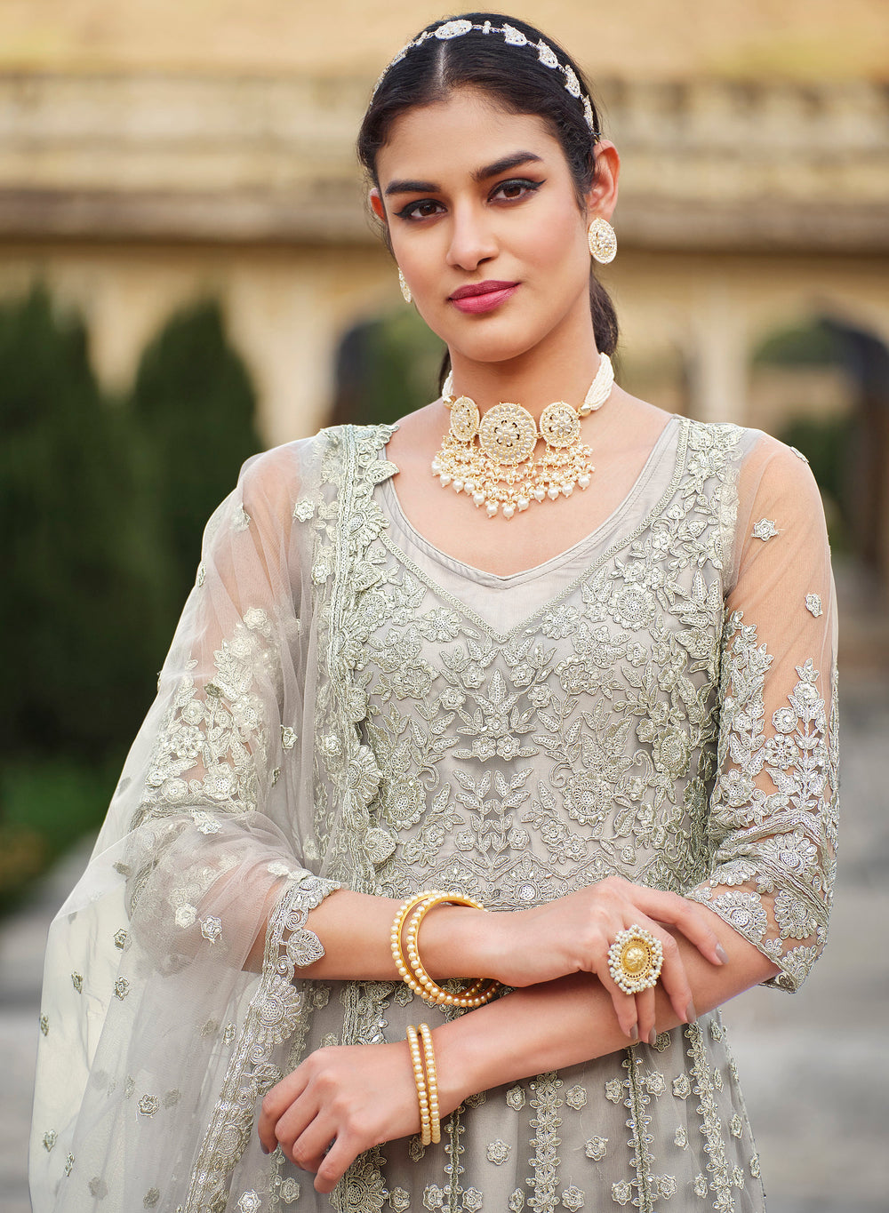 Make a statement on your special day with Ethnic Gallery's bridalwear Anarkali dress salwar suit. Crafted with pure butterfly net fabric, this exquisite ensemble is designed to enhance your bridal charm and leave a lasting impression.